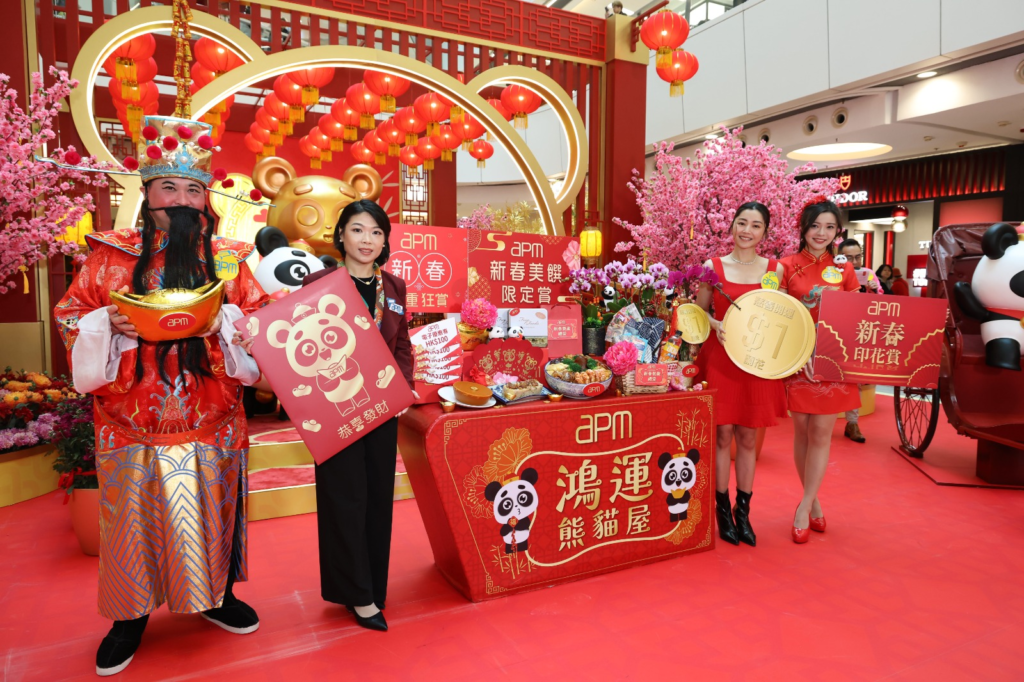 節日消費最受氣氛帶動,apm今年春節夥拍旅居西班牙藝術家Aleksandr Pushai,在中庭打造1,500 平方呎的「鴻運熊貓屋」,以港人及內地旅客最熟悉的國寶大熊貓為題材,提升觀賞投入度。藝術裝置呈現6隻大熊貓正在熊貓大宅準備過新年,並在6大場景,包括「6呎招財大熊貓」、「俏皮大熊貓爆竹迎春」、「大熊貓順風人力車」等,與顧客互動兼送上無限祝福。而裝置上另設AR拍照效果,顧客只要掃瞄在賀年場景四周的二維碼,即可進入照相館選擇相框,在鏡頭前化身得意的賀年熊貓吉祥物,並下載相片與家人朋友開心分享,同時亦為商場宣傳引流。