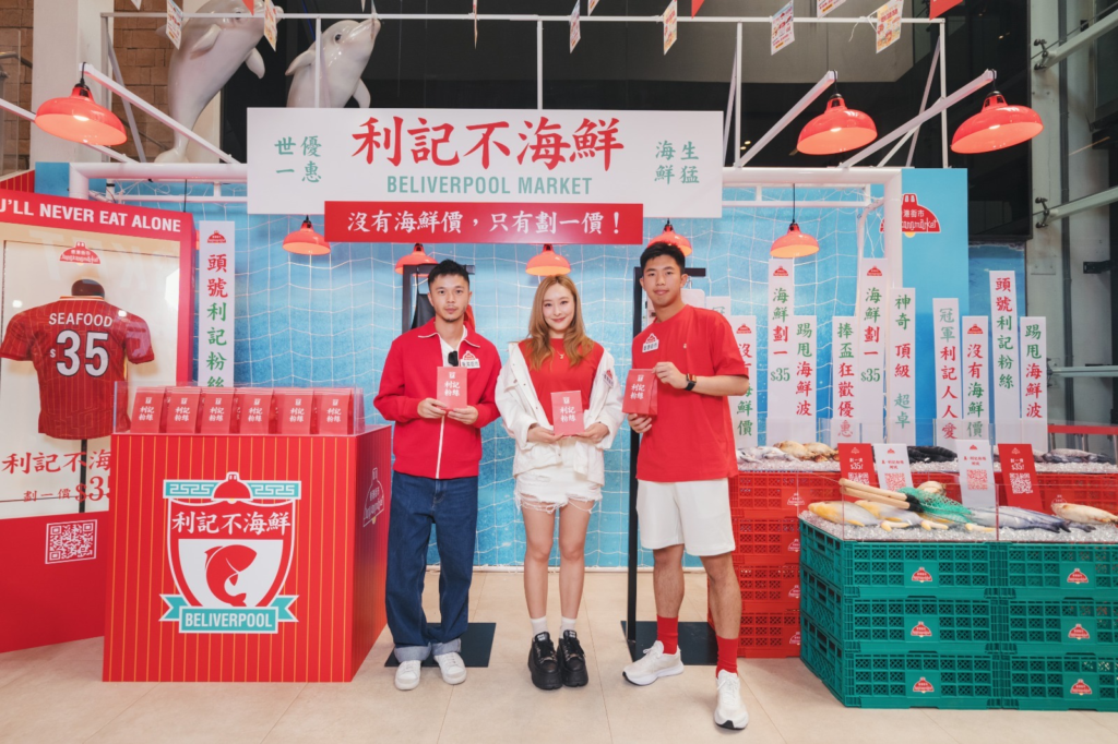 近幾個球季都因表現飄忽不定而被冠以「海鮮波」的利記(利物浦),在今屆英格蘭超級足球聯賽表現卓越,更於冠軍賽中勇奪冠軍寶座,成功打破「利記海鮮」的魔咒!香港街市一直以來都鼎力支持各類運動項目,見利記奪冠,特別於即日起隆重呈獻──「利記不海鮮 Beliverpool Market」概念專區,以「沒有海鮮價,只有劃一價」的銷售概念,將新鮮海產食材帶到每家每戶。除了一連串的慶祝優惠外,青衣市場更設有「利迷」打卡點,讓一眾利迷與街坊分享勝利喜悅!為隆重其事,香港街市更邀請到熱愛運動的女神球迷陳瀅,以及兩位港隊足球代表陳肇鈞和伍瑋謙現身青衣市場率先打卡!