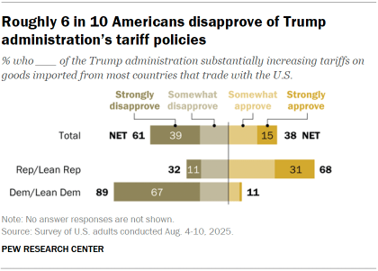 By a wide margin, Republicans approve of the administration’s tariff and trade policies while Democrats overwhelmingly disapprove: