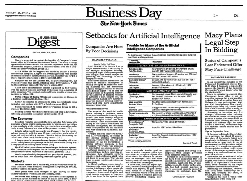But maybe this AI revolution will go bust, as others have before, with another “AI winter” to follow. There have been two notable winters. The first was in the 1970s, brought about by computational limits. The second began in the late 1980s after a wave of unmet expectations with high-profile failures and under-delivery of “expert systems.” These winters were characterized by a cycle of lofty expectations followed by profound disappointment, leading to significant reductions in funding and interest in AI.