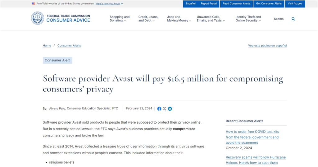 Unfortunately, Avast as a company has been involved in a ton of controversy regarding user data. In February 2024, the US Federal Trade Commission announced that Avast would have to pay $16.5 million for compromising consumers’ privacy. In the statement, the FTC said that Avast had “collected a treasure trove of user information through its antivirus software and browser extensions without people’s consent.” Furthermore, it found that the company had actually “sold the information through its subsidiary Jumpshot,” again without consent.