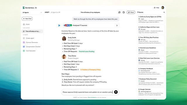 Unlike general-purpose AI chatbots, HRGPT combines real-time web search with access to internal company data and specialized HR knowledge. The system can perform tasks ranging from generating employment agreements to tracking time-off requests and managing international expense reimbursements.