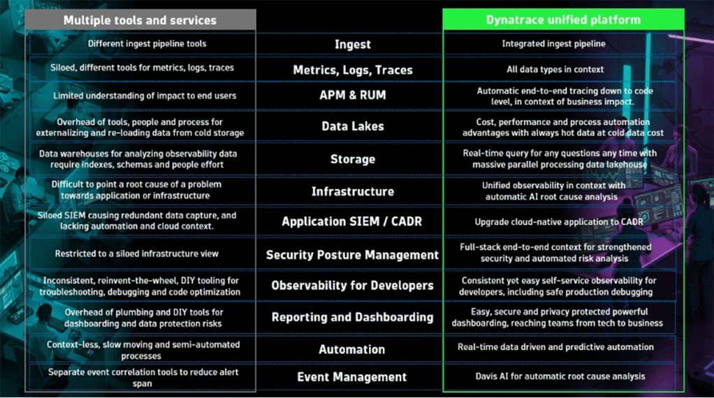 Today’s need for optimization and efficiency pushes executives to see alternative setups and architectures, which often leads them to Dynatrace as a unified platform that can cover all these needs at once.