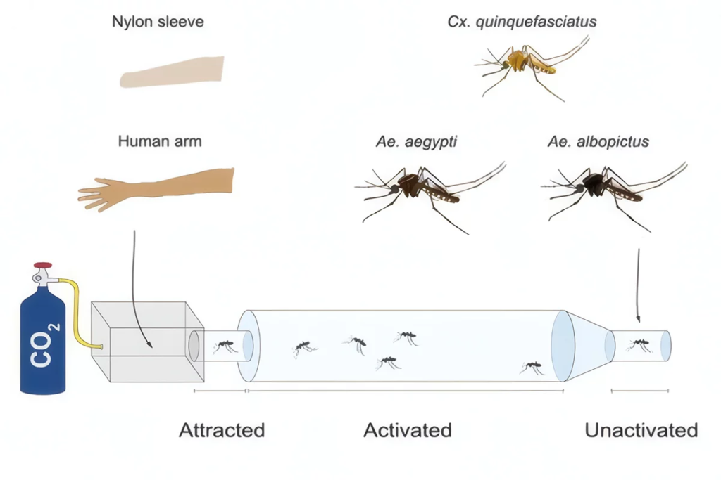 The team used a device called a Uniport olfactometer to quantify how many mosquitoes flew towards a specific scent source. Participants placed an arm in the device to expose mosquitoes to their scent.