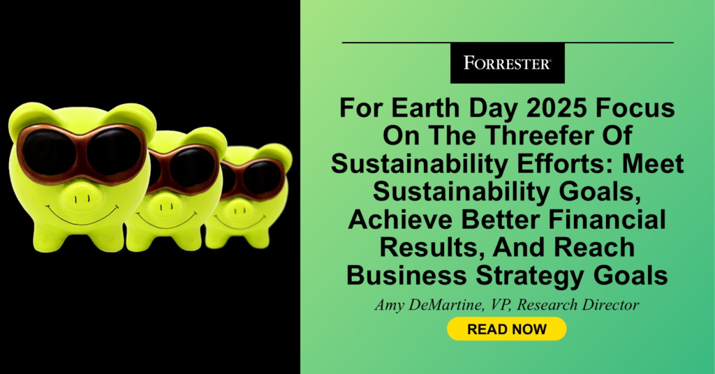 This past year, I was describing what a “twofer” was to my colleague Jinan Budge in Australia. I casually dropped this term for getting two things for the price of one during a conversation. In addition to talking about how weird lingo can be, it also led to me proposing that what we were talking about was actually a “threefer” — getting three things for the price of one. I can’t seem to let the idea of the threefer go when it comes to environmental sustainability efforts. Forrester’s original framing of the green market revolution explicitly made the point that sustainability efforts can be good business, showing the twofer effect: