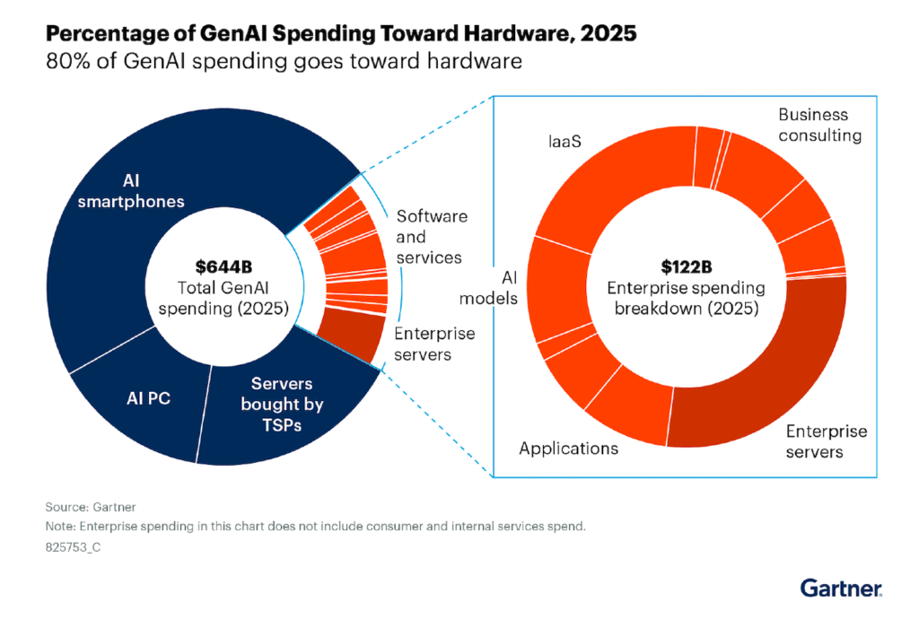 Generative AI spending will reach $644 billion in 2025. This is a jump of 76.4% from 2024’s numbers.