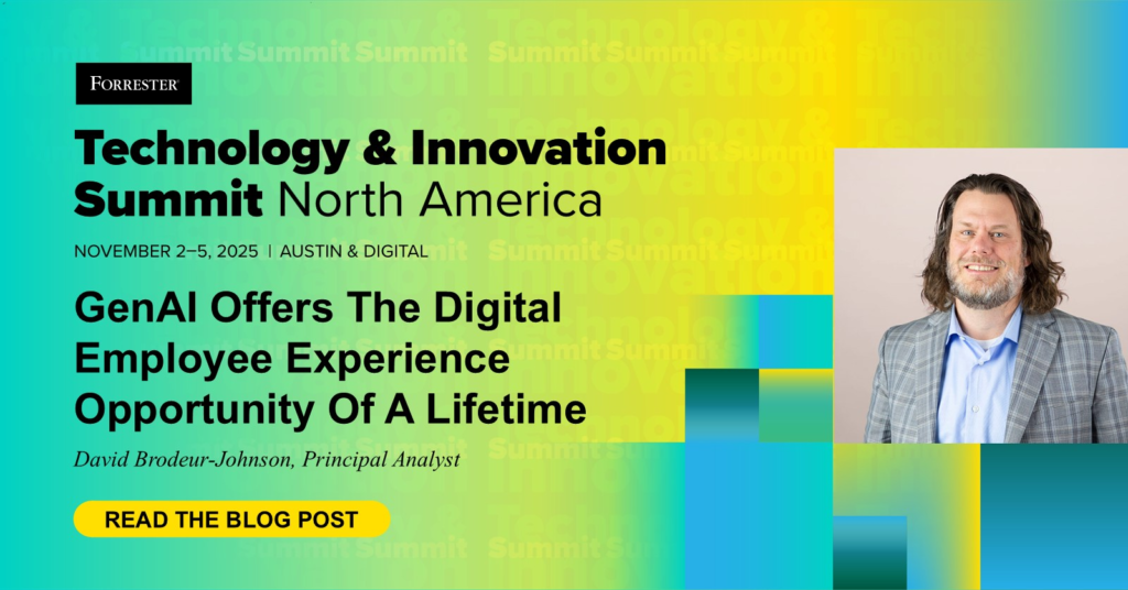 This is the opportunity of a lifetime for technology leaders to do career-defining work in helping their companies channel energy and limited resources into AI projects wisely. To help them do this, I’ll be leading a breakout session on AI-enabled DEX at Forrester’s Technology & Innovation Summit North America this November.