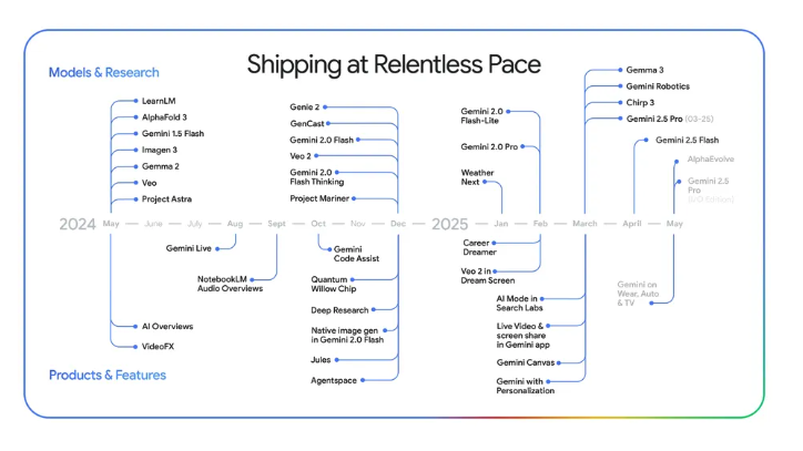 After three hours at Google’s I/O 2025 event last week in Silicon Valley, it became increasingly clear: Google is rallying its formidable AI efforts – prominently branded under the Gemini name but encompassing a diverse range of underlying model architectures and research – with laser focus. It is releasing a slew of innovations and technologies around it, then integrating them into products at a breathtaking pace.