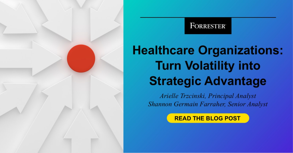 We’re here to help you navigate the complexities of today’s healthcare landscape with confidence and resilience. Forrester clients can read our latest research for a detailed look at actionable strategies to thrive through volatility in healthcare and use the accompanying prioritization tool to determine their best steps forward. Clients: Please schedule a guidance session to delve into this research and have us by your side every step of the way.