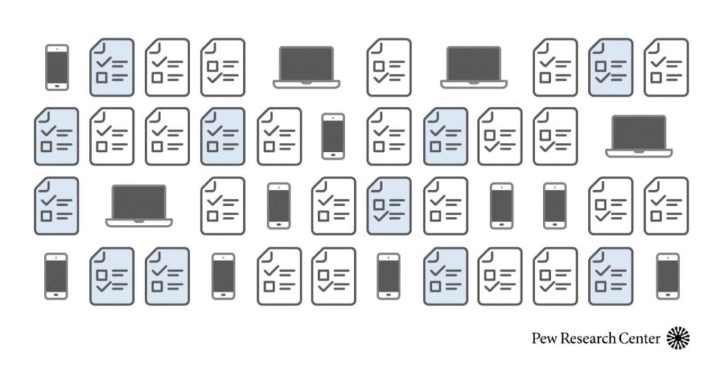 In 2020, Pew Research Center launched a new project called the National Public Opinion Reference Survey (NPORS). NPORS is an annual, cross-sectional survey of U.S. adults. Respondents can answer by paper, online or over the phone, and they are selected using address-based sampling from the United States Postal Service’s Computerized Delivery Sequence File. The rigorous design of NPORS results in a response rate around 30%.