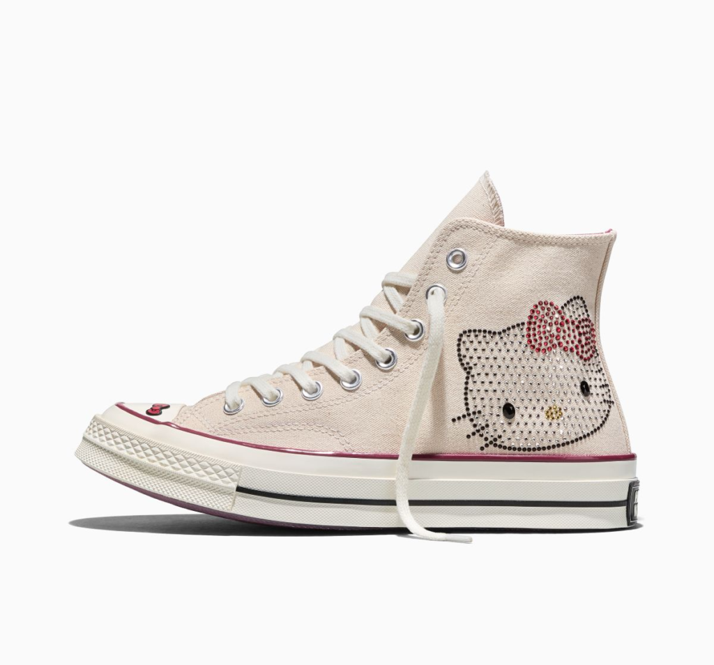 More notably, the collaboration builds on past Sanrio x Converse releases but introduces a stronger push towards personalisation and collectability. This includes a premium Chuck Taylor 70 design embellished with Swarovski crystals alongside a “Converse x Hello Kitty and Friends By You” (CBY) customisation experience that allows fans to design their own pairs.