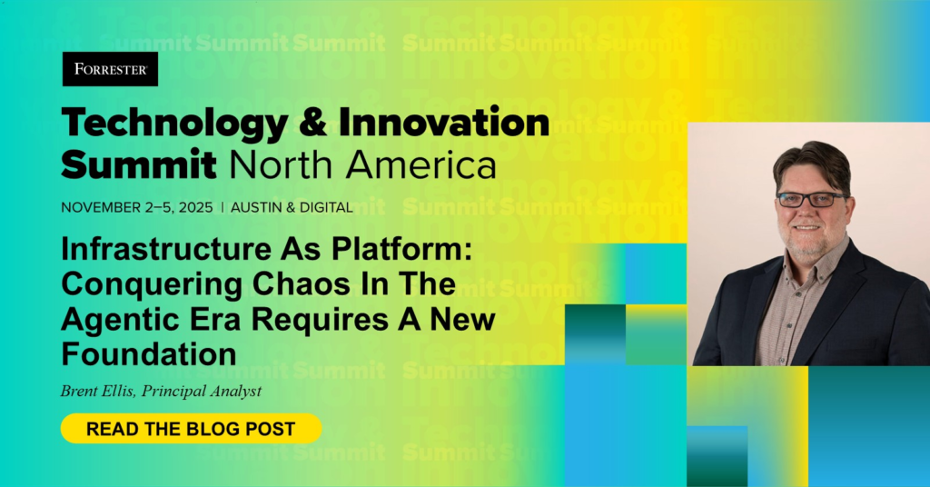 Is your infrastructure ready for the future? Join me this November at Forrester’s Technology & Innovation Summit North America in Austin. I’ll be presenting a keynote entitled “Build Infrastructure As Platforms To Master Growth, Agility, And Governance” to help you learn how to transition your business’s infrastructure platforms to meet the future of your business. We’ll also have a full track on cloud, infrastructure, and operations at the event.