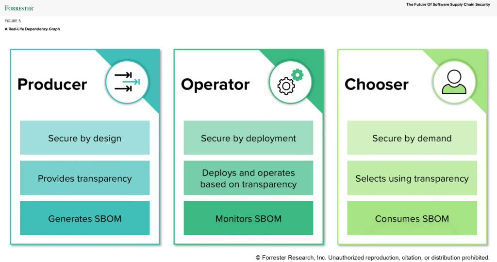 • SBOMs are no longer just nice to have. A software bill of materials (SBOM) isn’t just a compliance checkbox — it’s a strategic asset. Producers must generate them, operators must monitor them, and choosers must demand them. SBOMs enable transparency, vulnerability tracking, license obligation visibility, a window into operational risk, and faster incident response.