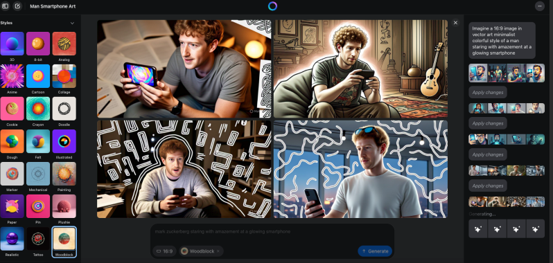 The web version seems especially powerful and capable for image creation, with many pre-set styles and aspect ratios to choose from. In my brief hands-on tests with the mobile app, the image creation tools seemed far more limited and I wasn’t able to find a way to switch the aspect ratio. In both formats, the image quality was far lower than dedicated and rival AI image generators such as Midjourney or OpenAI’s GPT-4o native image generation.