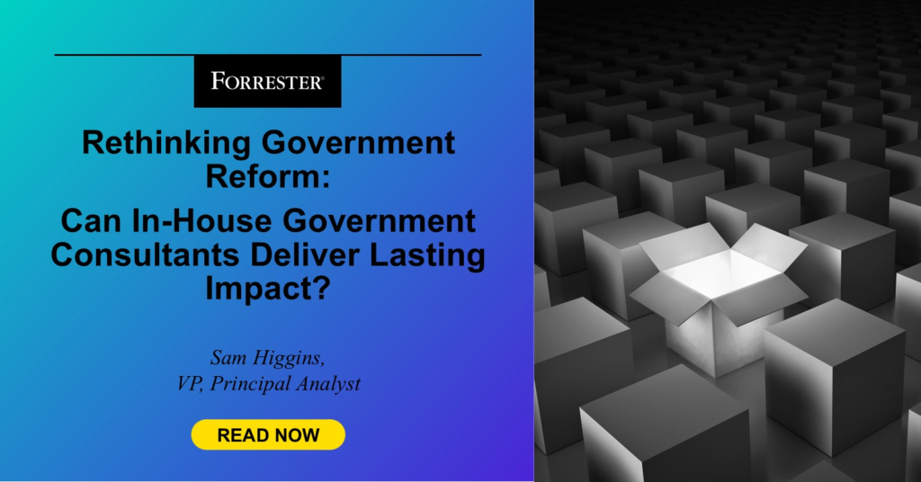 Nineteen percent of business and technology professionals in the public sector are bringing previously outsourced processes or functions back in-house to reduce costs, according to Forrester survey data. Internal consultancies — mission-driven capability centers for innovation, strategy, and execution — are emerging as key vehicles for governments seeking to do more in-house. Some of the most well-established examples are the bipartisan Australian Government Consulting (AGC) unit, the Canadian Digital Service, Singapore’s GovTech agency, and the UK’s Government Digital Service. As many more jurisdictions adopt internal consultancies, we need to ask: Are we building them to last or simply building them fast?