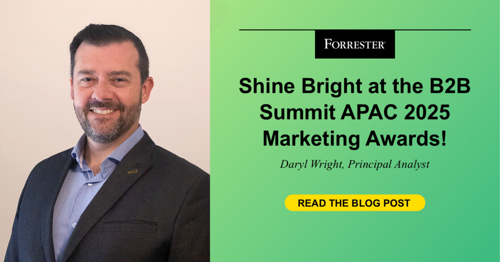 Winners will be unveiled just before the Forrester B2B Summit APAC on November 6th in Singapore. Imagine sharing your inspiring journey on the event main stage and receiving complimentary tickets to B2B Summit APAC 2024. But that’s not all! Both winners and finalists can bask in the limelight, featuring in Forrester reports, videos, social media posts, and other prominent channels, celebrating your success far and wide.