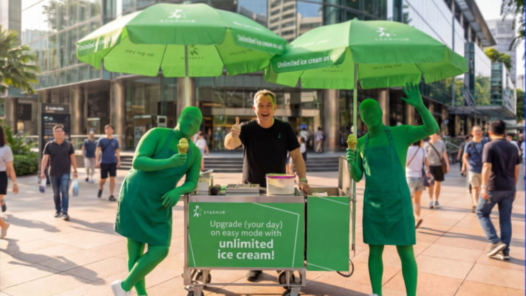 This weekend’s ice cream activation builds on StarHub’s broader “We got you” brand platform, which debuted in November 2025. Developed with TBWASingapore, the platform positions StarHub around connection and peace of mind rather than the usual focus on speed and data. It introduced the Hublings, a cast of all-green, non-speaking characters representing the brand’s promise of reliability and care.