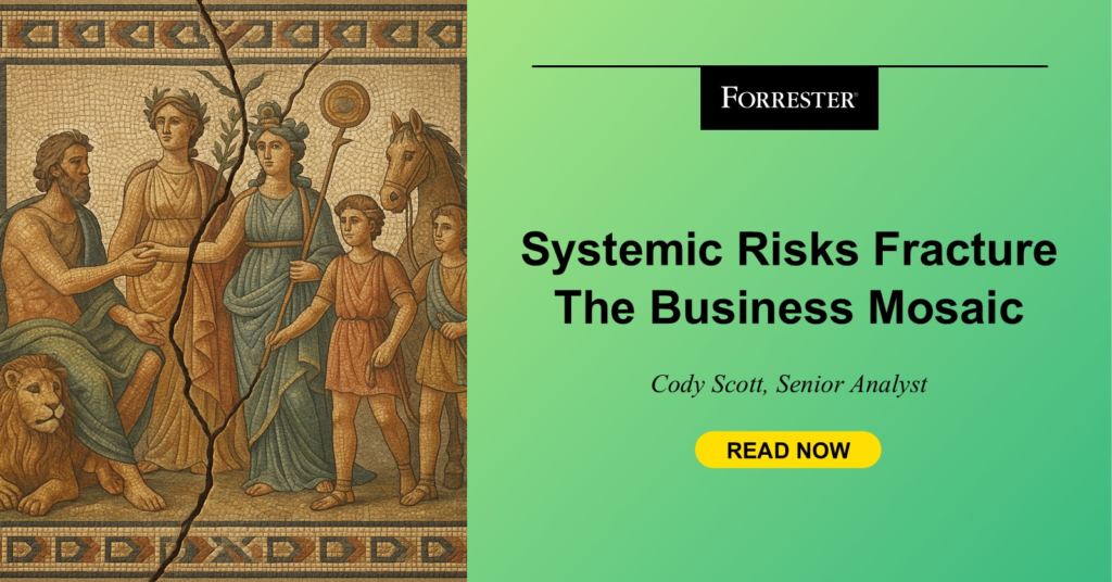 Forrester’s new report, The Top 10 Systemic Risks, 2025, reveals a shifting pattern of concern among risk leaders. While data integrity retains its place as the most pressing systemic risk, geopolitical risk has surged from ninth to third, reflecting a world increasingly shaped by conflict, fragmentation, and regulatory unpredictability. This year’s top systemic risks report underscores that systemic risks are less like isolated cracks and more like pressure points that can shatter the entire design if left unaddressed.