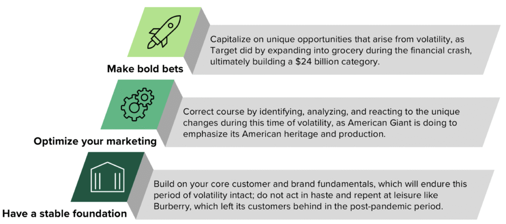 To optimize marketing for this new era of volatility, we recommend five precision plays: