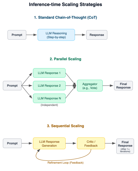 - Sequential Scaling: The model iteratively generates an answer and uses feedback from a critic (potentially from the model itself) to refine the answer in subsequent attempts.