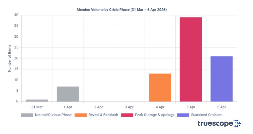 Truescope found that public perception of the brand’s marketing tactic leaned negative at 55%, with a further 25% moderately negative. Most comments expressed disapproval and concern over deceptive and unethical practices, as well as disappointment at the perceived lack of sincerity in the brand’s public apology.