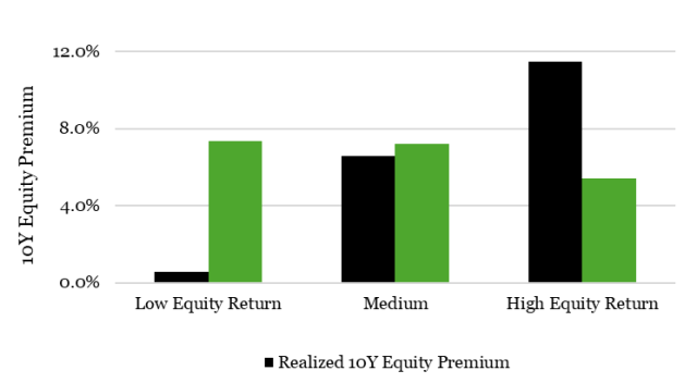 Figure 1 | Realized and subsequent US 10-year equity premiums